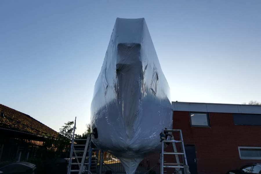 Schiffe, Yachten und Boote können mit unserem Service optimal für Transporte (direkt zum Kunden / von einer zur nächsten Produktions Stufe oder für Winterlager vor Witterungseinflüssen und neugierigen Blicken geschützt werden. Verpackung komplett oder nur bis zur Wasserlinie. Projektanfrage